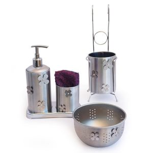 ست استیل گلدار (جاقاشق تک-جامایع وجا اسکاجی-صافی سینک)